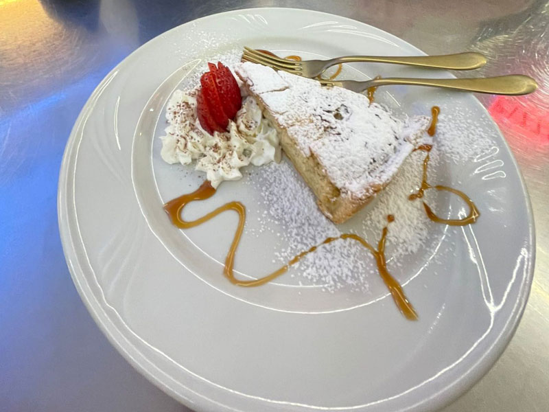 Grande importanza viene data anche ai dolci, e qui troverete: pastiera napoletana, babà, torta caprese, zuppa inglese, tiramisù, torta della nonna, profiterole e dolci al bicchiere.