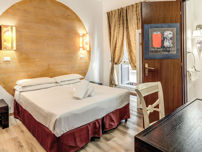 Seppur diverse una dall’altra, sia nel taglio, che negli arredi decorativi, tutte le camere dispongono degli stessi confort.
