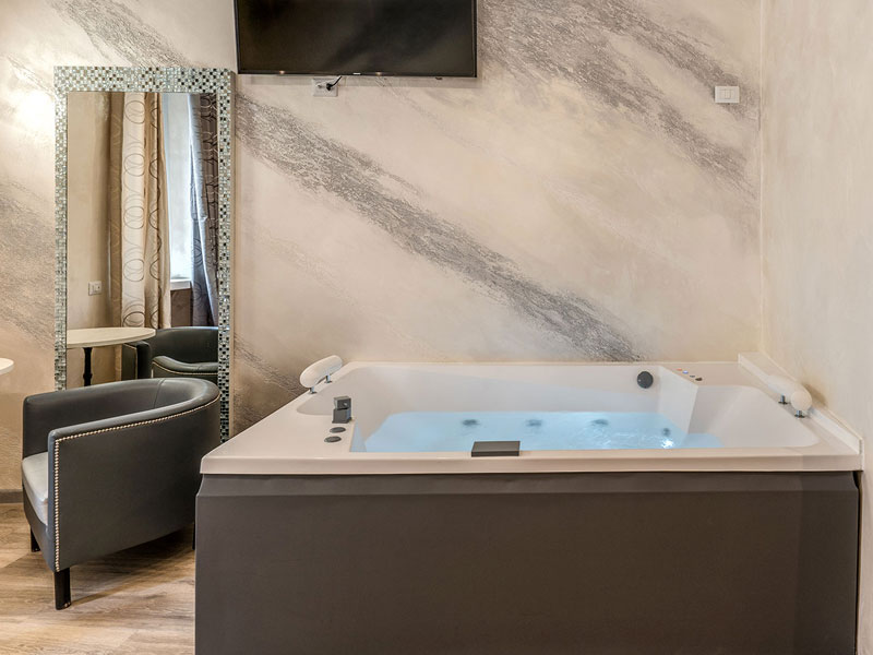 Nella Suite con vasca idromassaggio Jacuzzi King Size, i nostri ospiti possono vivere un soggiorno romantico o semplicemente un momento di relax.